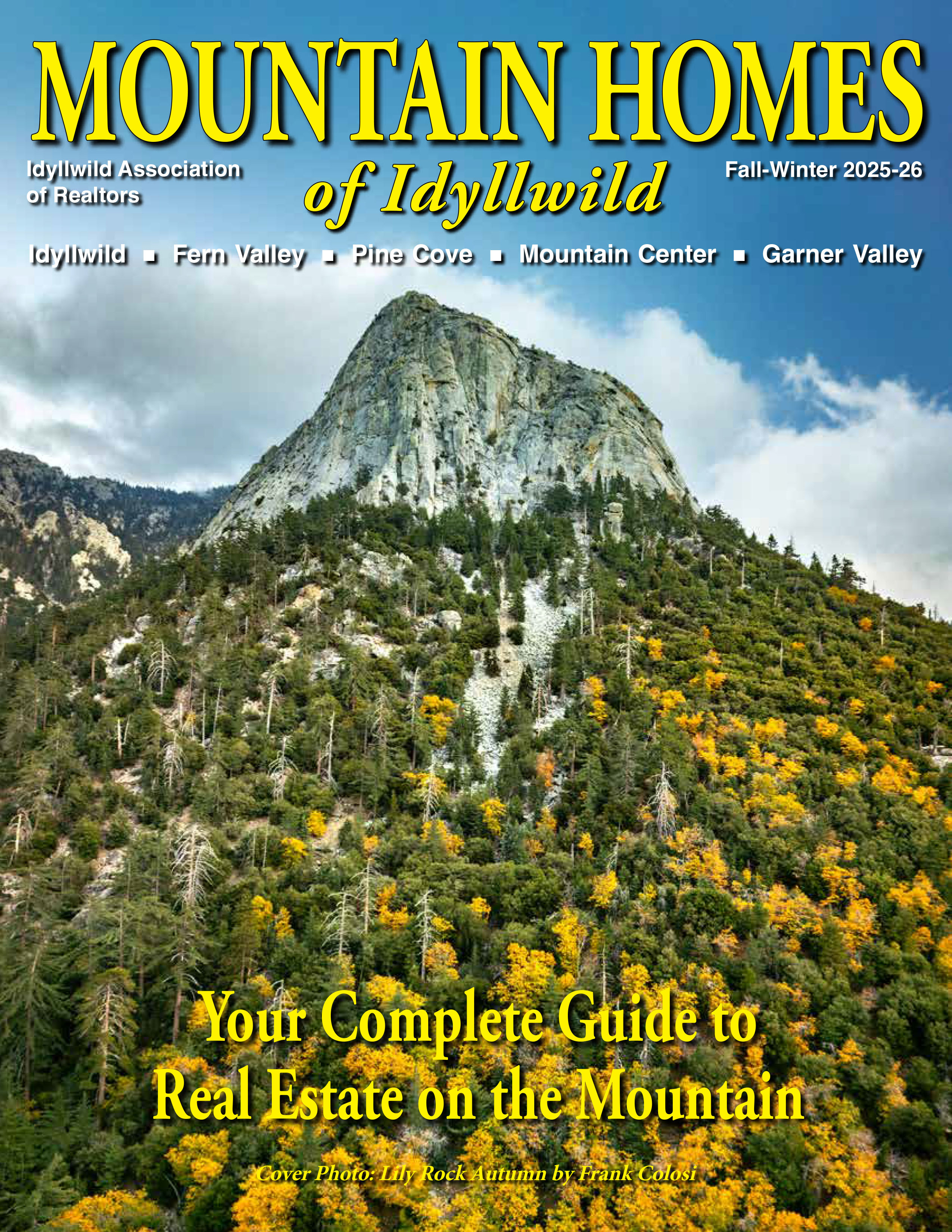 Mountain Homes of Idyllwild is the official real estate publication of the Idyllwild Association of Realtors (IAOR). Currently, the publication comes out twice a year, in Spring-Summer, and Fall-Winter. Advertising in the publication is limited to IAOR member Realtors and Affiliates. To Advertise, please contact independent publisher Jim Crandall, 951-265-5732. Or fill out the contact form here.